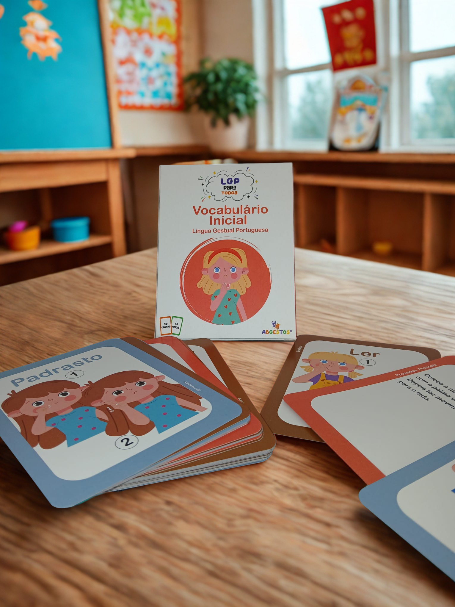 Pack de 200 cartas de Língua Gestual Portuguesa (LGP) em 4 conjuntos temáticos.